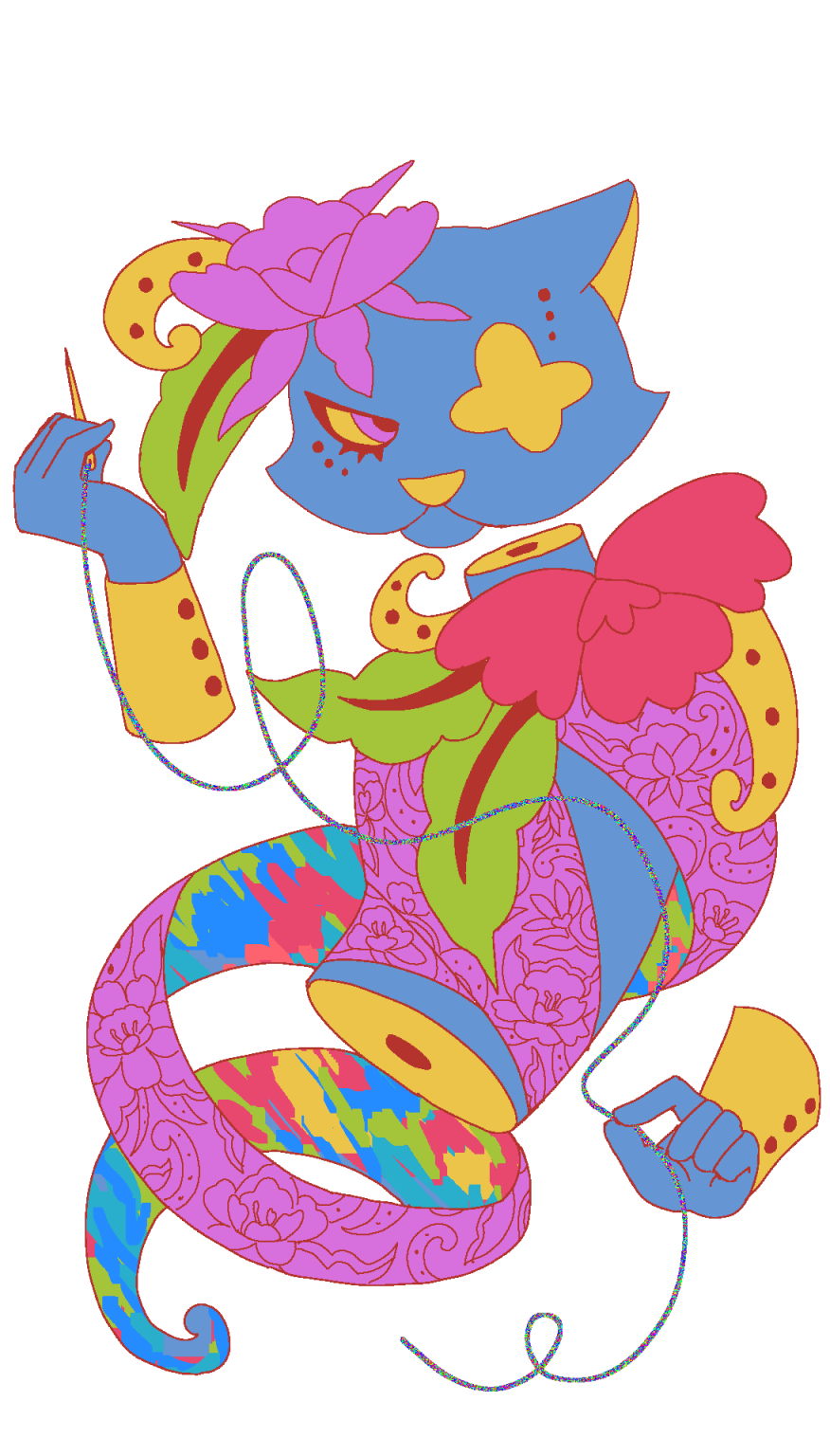 Unlike the three, Irauma is a TRUE Wanderer, formed long ago by THE VOID : from fabric decorated in colorful patterns. She creates uniforms and Portal fabrics that turns into capes, cloaks, even accesories like scarves or bandanas. Any attire or piece of clothing she made contains her emblem.
